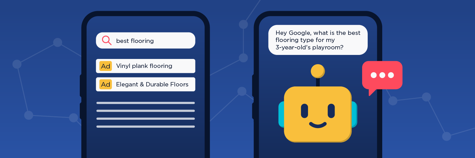 Remember the good ol’ days of search? You’d type “best flooring” into a little box, hit enter, and a list of the top 10 sites would appear. Simple, clean, and predictable. As experts, we obsessed over the perfect keywords, ad headlines & descriptions, and the perfect title tag to match.